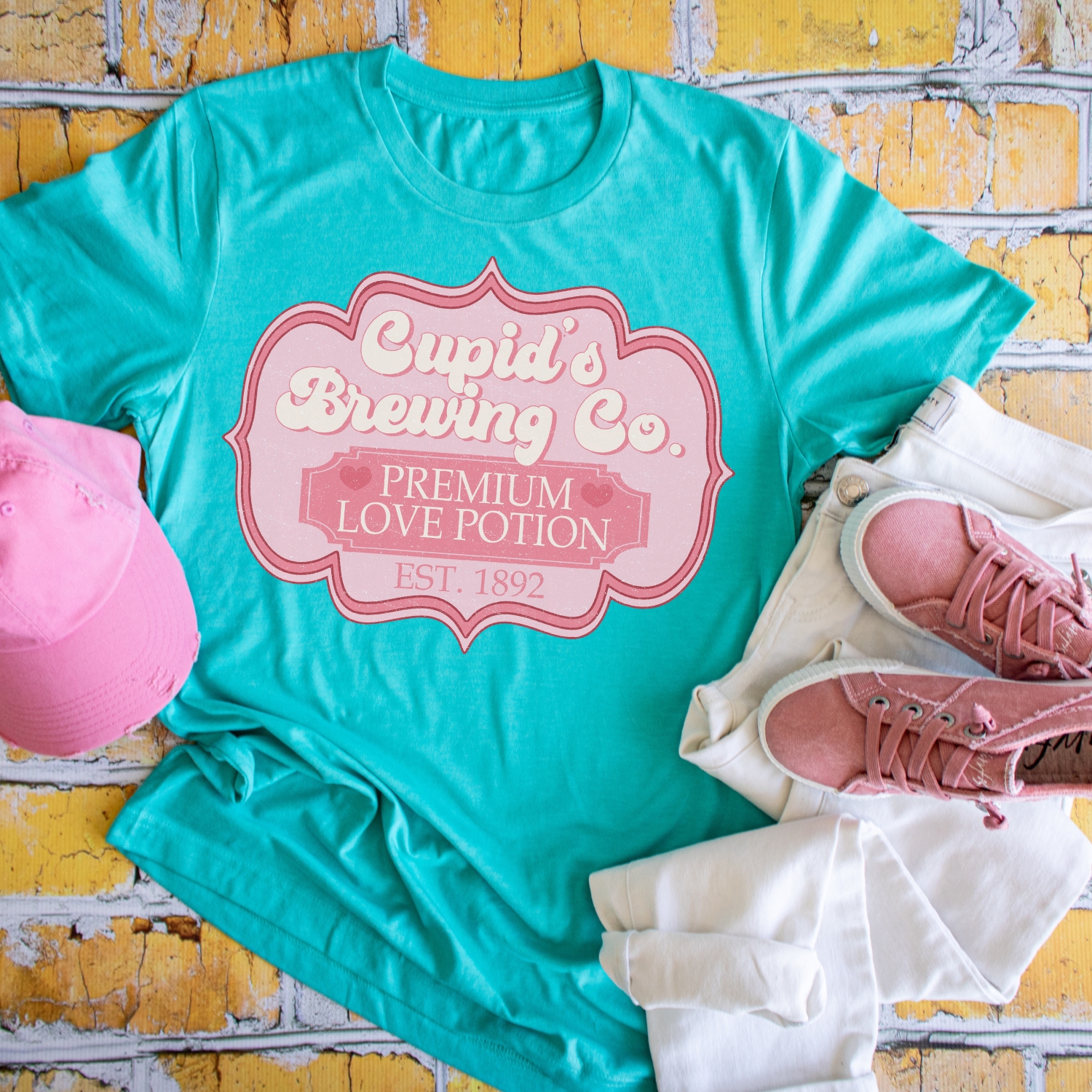 Spread love and good vibes with our “Cupid’s Brewing Co.” T-shirt, the perfect addition to your Valentine’s Day wardrobe.